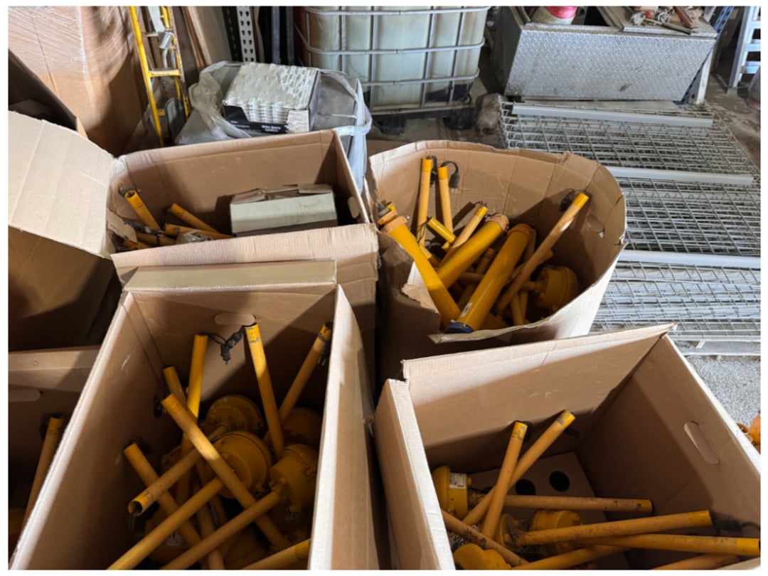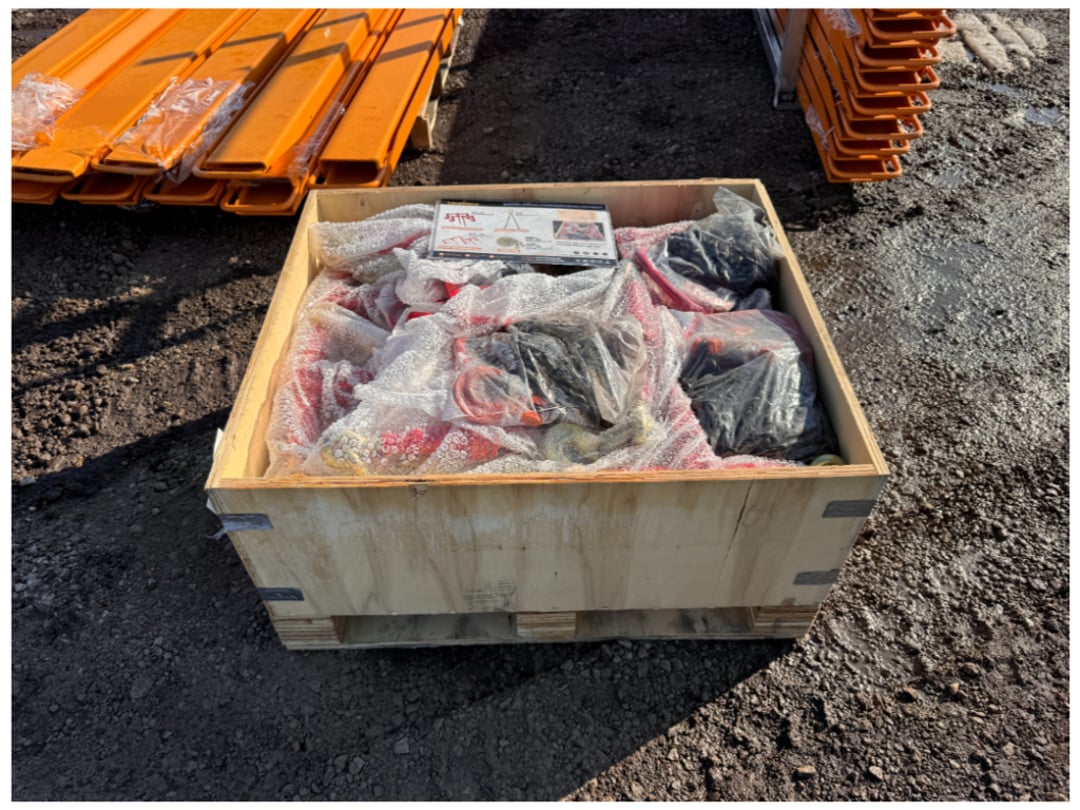 250 + Various Skid Loader Attachments, Tool Boxes Workbenches, Iron Gates, Chains & Binders,1 Trip 40' & 20' High Side Shipping Container w/ Side Doors, Dome Shelter Containers, Various Truck Take off Parts, Construction Material, Golf Carts & Much More!